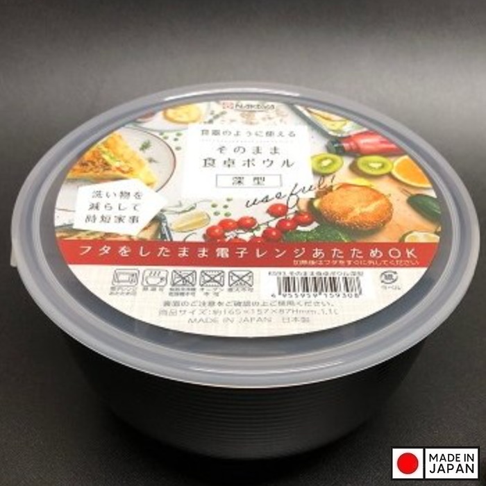 Hộp nhựa dùng trong lò vi sóng Nakaya 1.1L ■ Xuất xứ: Nhật Bản | MADE IN JAPAN ■ NSX: Nakaya Chemical Industry Co., Ltd (Japan) ■ Model: K-593 ■ Dung tích: 1100ml ■ Kích thước: Ø165x157x87Hmm ■ Màu