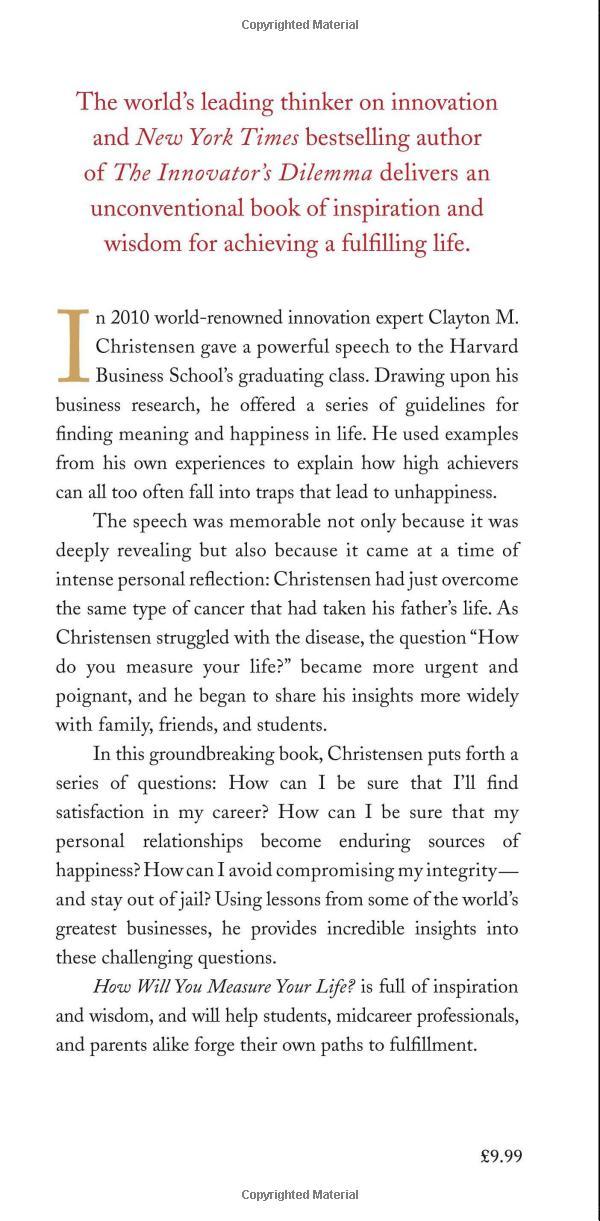 How Will You Measure Your Life? is full of inspiration and wisdom, and will help students, midcareer professionals, and parents alike forge their own paths to fulfillment.