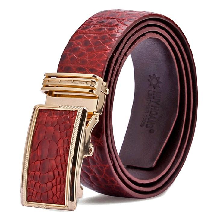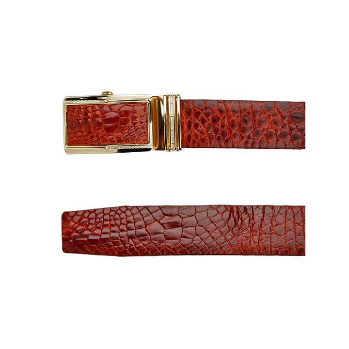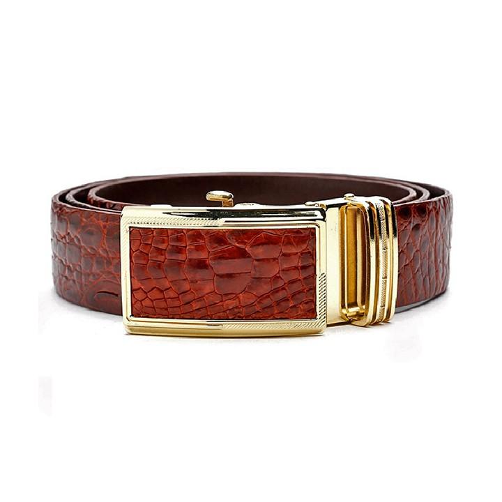 ✨HP4830 - Dây nịt nam da cá sấu Huy Hoàng gai bụng 3,5P màu nâu đỏ