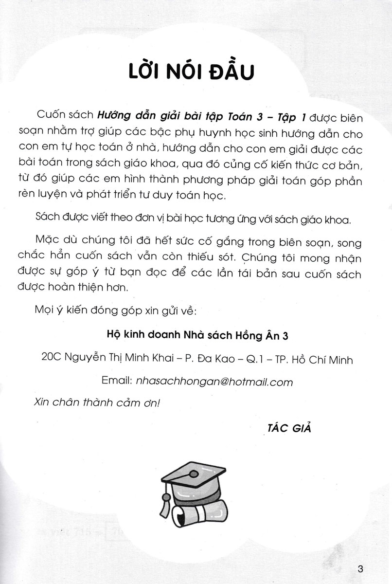 Cuốn sách Hướng dẫn giải bài tập Toán 3 – Tập 1 + Tập 2 được biên soạn nhằm trợ giúp các bậc phụ huynh học sinh hướng dẫn cho con em tự học toán ở nhà, hướng dẫn cho con em giải được các bài toán trong sách giáo khoa, qua đó củng cố kiến thức cơ bản, từ đó giúp các em hình thành phương pháp giải toán góp phần rèn luyện và phát triển tư duy toán học.