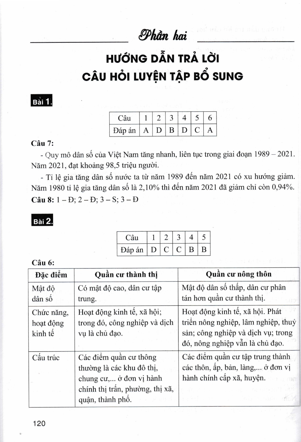 Trong phần này, tác giả hướng dẫn trả lời các câu hỏi và bài tập giữa bài học, phần luyện tập và vận dụng. Bên cạnh đó tác giả còn đưa ra các câu hỏi luyện tập bổ sung để giúp các em học sinh tự đánh giá, kiểm tra và rèn luyện các kỹ năng địa lí nhằm nâng cao kiến thức trong học tập.