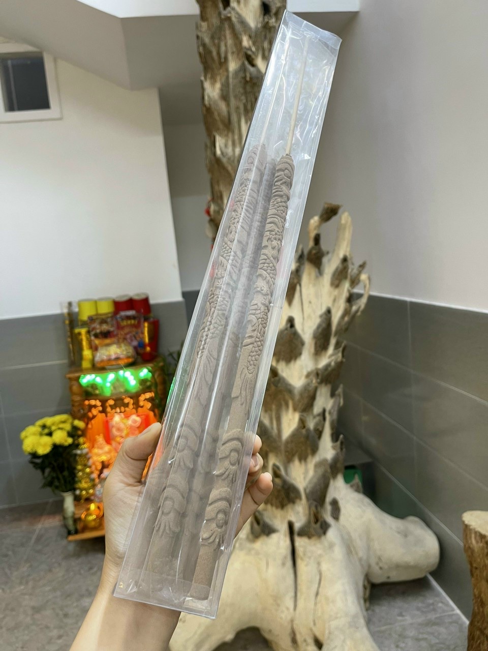 Mua tại TiktokKích thước: Hương cao 50 cm Khối lượng: 200g Chất liệu: trầm hương Mẫu 1: Hộp có 10 cây Mẫu 2 ( Hương chạm rồng ): Hộp có 3 cây Mỗi cây thắp được 4 giờ Hương được làm từ bột trầm nguyên chất thiên nhiên ủ rất lâu nên mùi ngọt, thanh an toàn cho sức khỏe cả gia đình.
