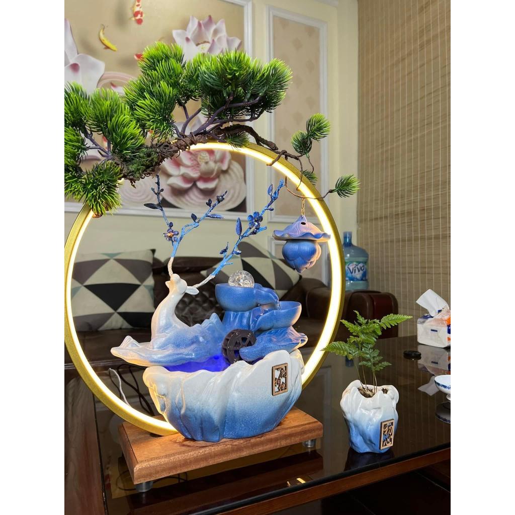 Thác Nước Phong Thủy Kỳ Lân, Rồng, Hươu Kèm Đèn Led tặng kèm cây xanh và nụ trầm