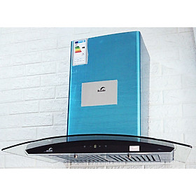 Kiểu máy kính gắn tường - mặt kính cong Chất liệu Inox - kính Màn hình LCD Điều khiển bằng cảm ứng - hẹn giờ tắt Khử mùi bằng than hoạt tính, ống thoát Ø150