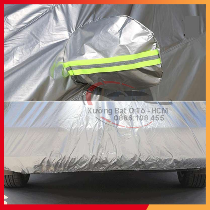 Bạt phủ xe ô tô 7 chỗ 3 lớp tráng nhôm cách nhiệt, chống nóng, chống thấm, chống bụi bẩn - Bạt phủ xe có mặt ngoài là chất liệu vải PEVA tráng nhôm phản