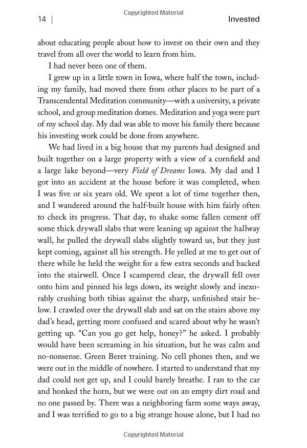In Invested, Danielle shows you how to do the same: how to take command of your own life and finances by choosing companies with missions that match your values, using the same gold standard strategies that have catapulted Warren Buffett and Charlie Munger to the top of the Forbes 400. Avoiding complex math and obsolete financial models, she turns her father’s investing knowledge into twelve easy-to understand lessons.