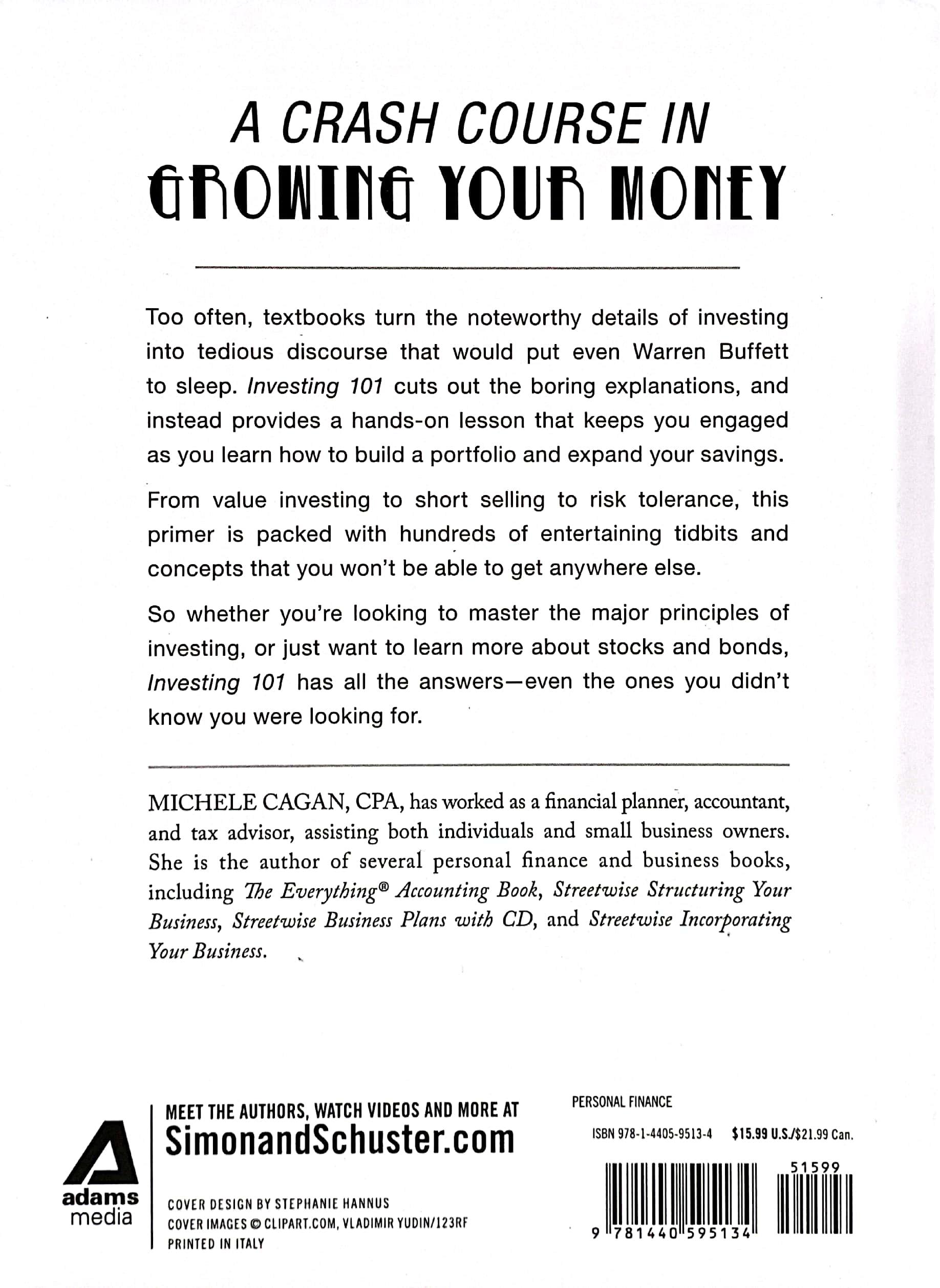 ✨Investing 101: From Stocks and Bonds to ETFs and IPOs, an Essential Primer on Building a Profitable Portfolio (Adams 101) Hardcover – January 1, 2016 by Michele Cagan CPA (Author)