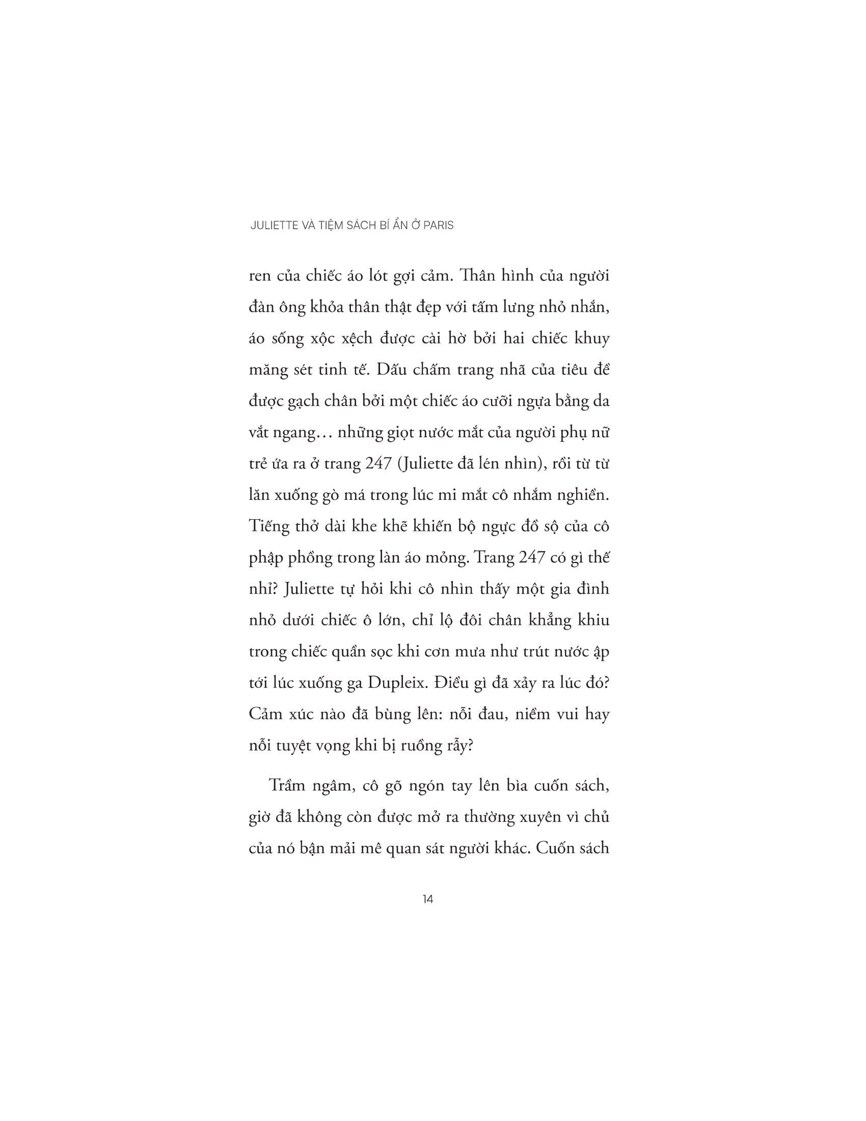 Ấm áp, hài hước và vui nhộn, “Juliette và tiệm sách bí ẩn ở Paris” là một câu chuyện về tuổi trưởng thành bị trì hoãn, về một phụ nữ trẻ dám thay đổi cuộc đời m.ình và tôn vinh sức mạnh của sách khi gắn kết con người chúng ta lại với nhau.
