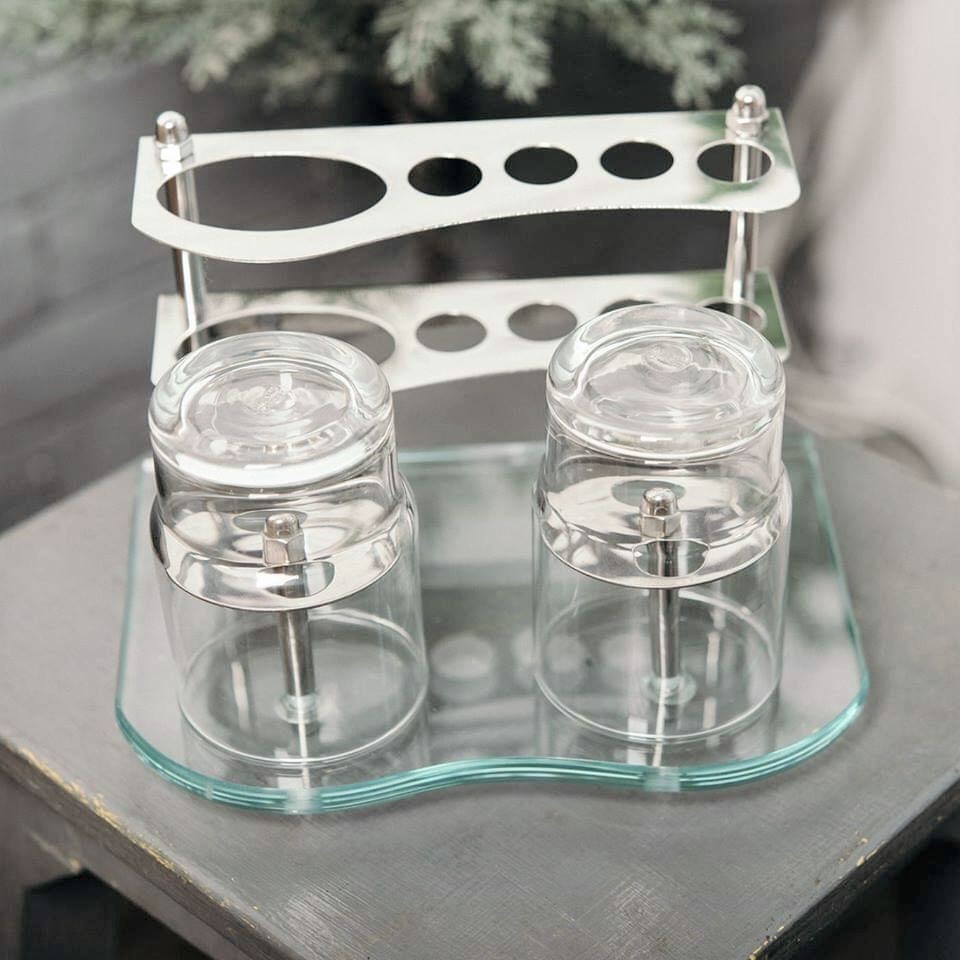Bộ sản phẩm bao gồm kệ và bộ 2 ly thủy tinh