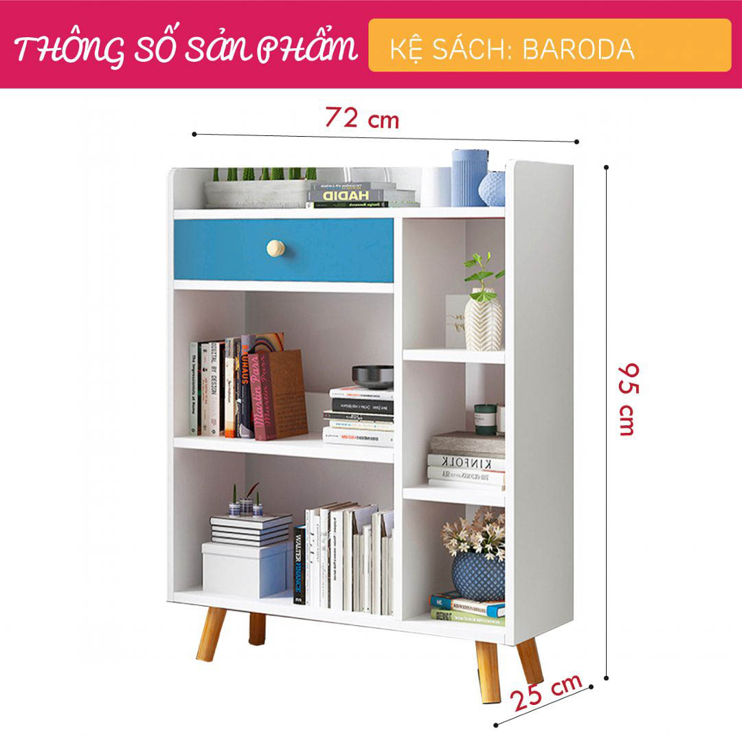 Mua tại TiktokKệ sách SMLIFE Baroda được ví như một tác phẩm nghệ thuật với phong cách đơn giản sẽ giúp bạn xắp sếp những cuốn sách một cách sành điệu và độc đáo. Kệ sách Baroda mang đến sự tinh tế, hiện đại cho phòng khách của bạn và đồng thời cung cấp một không gian lớn cho các vật dụng trang trí. Sản phẩm phù hợp cho mọi phong cách trang trí căn hộ và văn phòng làm việc. Sử dụng vật liệu ván ép công nghiệp MDF chống ẩm phủ Melamine cao cấp giúp kệ sách SMLIFE có độ bền cao, chống trầy và chống ẩm rất tốt. Bạn có thể tự lắp đặt sản phẩm dễ dàng với các phụ kiện và hướng dẫn đi kèm. ĐẶC ĐIỂM SẢN PHẨM: