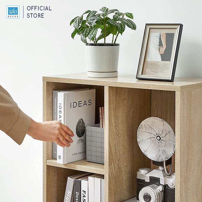 - Kệ gỗ thiết kế đơn giản với 5 ngăn mang đến không gian lưu trữ rộng rãi cho sách hoặc đồ trang trí.