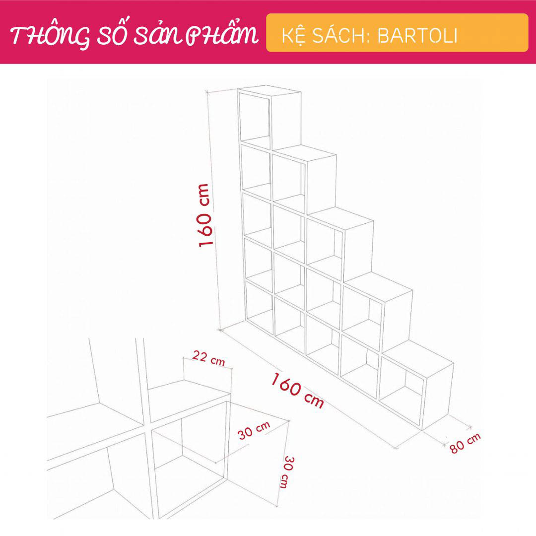 Mua tại TiktokKệ sách SMLIFE Bartoli được ví như một tác phẩm nghệ thuật với phong cách đơn giản sẽ giúp bạn xắp sếp những cuốn sách một cách sành điệu và độc đáo. Kệ sách Bartoli mang đến sự tinh tế, hiện đại cho phòng khách của bạn và đồng thời cung cấp một không gian lớn cho các vật dụng trang trí. Sản phẩm phù hợp cho mọi phong cách trang trí căn hộ và văn phòng làm việc. Sử dụng vật liệu ván ép công nghiệp MDF chống ẩm phủ Melamine cao cấp giúp kệ sách SMLIFE có độ bền cao, chống trầy và chống ẩm rất tốt. Bạn có thể tự lắp đặt sản phẩm dễ dàng với các phụ kiện và hướng dẫn đi kèm. ĐẶC ĐIỂM SẢN PHẨM: