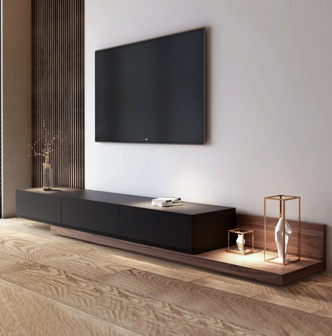 Ngoài bộ bàn ghế để ngồi, nơi đáng chú ý nhất ở căn phòng này là chiếc kệ tivi. Đây cũng chính là điểm nhấn thường thường được chú ý nhiều nhất trong phòng khách. Vì vậy khi lựa chọn kệ tivi cần lựa chọn kỹ lưỡng về hình dáng, màu sắc sao cho phù hợp với nội thất bên trong và không gian khu vực tiếp khách.