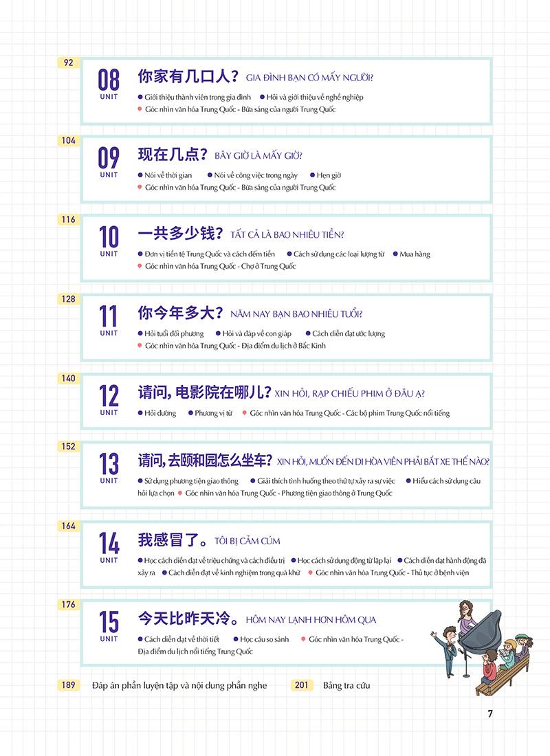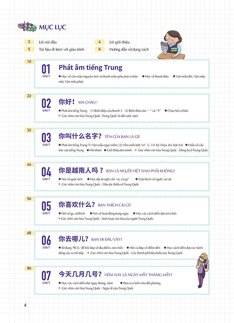 15 bài học được hiệu đính tỉ mỉ, hoàn toàn khác biệt với những giáo trình tiếng Trung nặng nề khô khan khác.