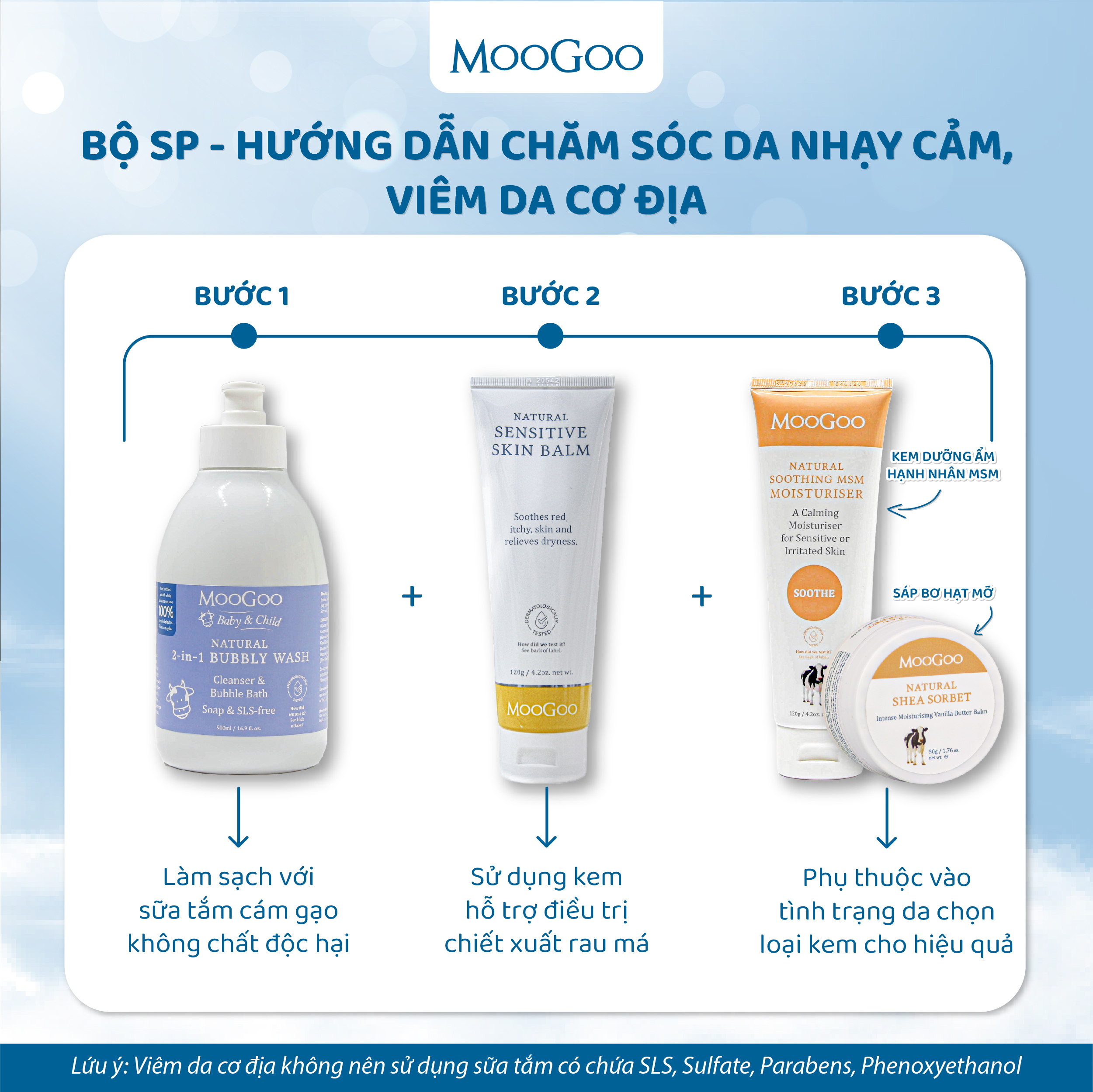 Chỉ định: Da chàm, viêm da cơ địa, dị ứng, ngứa, mẩn đỏ Cách dùng: Lấy một lượng kem dưỡng vừa đủ, thoa lên da và massage cho đến khi thẩm thấu. Dùng bất cứ khi nào