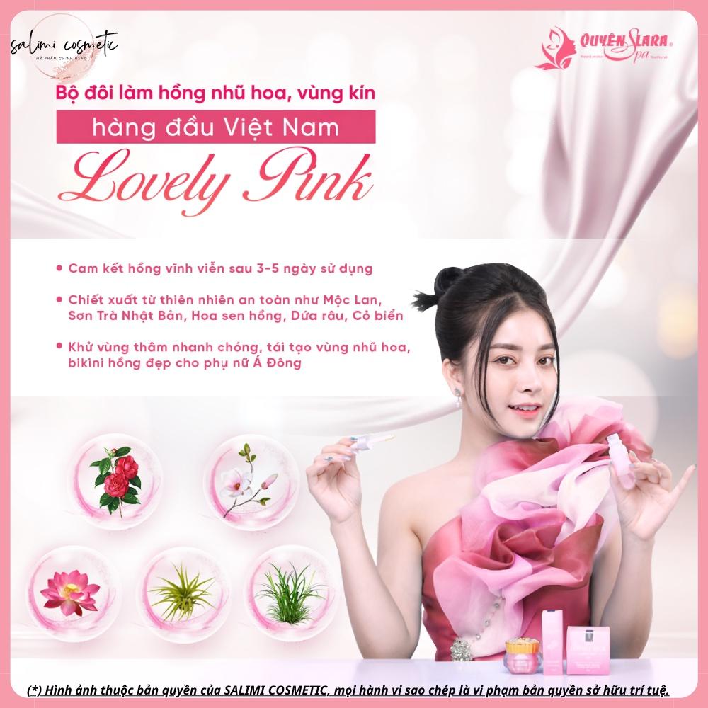 - Làm hồng vùng kín lovely pink giúp làm nhạt màu thâm của quầng vú và đầu vú, cải thiện độ thô nháp của da, khôi phục độ bóng nhẵn và mềm mại cho da.