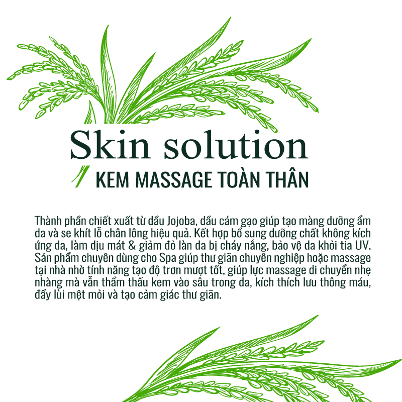 - Sản phẩm chuyên dùng cho Spa giúp thư giãn chuyên nghiệp hoặc massage tại nhà nhờ tính năng tạo độ trơn mượt tốt, giúp lực massage di chuyển nhẹ nhàng mà vẫn thẩm thấu kem vào sâu trong da, kích thích lưu thông máu, đẩy lùi mệt mỏi và tạo cảm giác thư giãn tối ưu. Ưu điểm vượt trội: