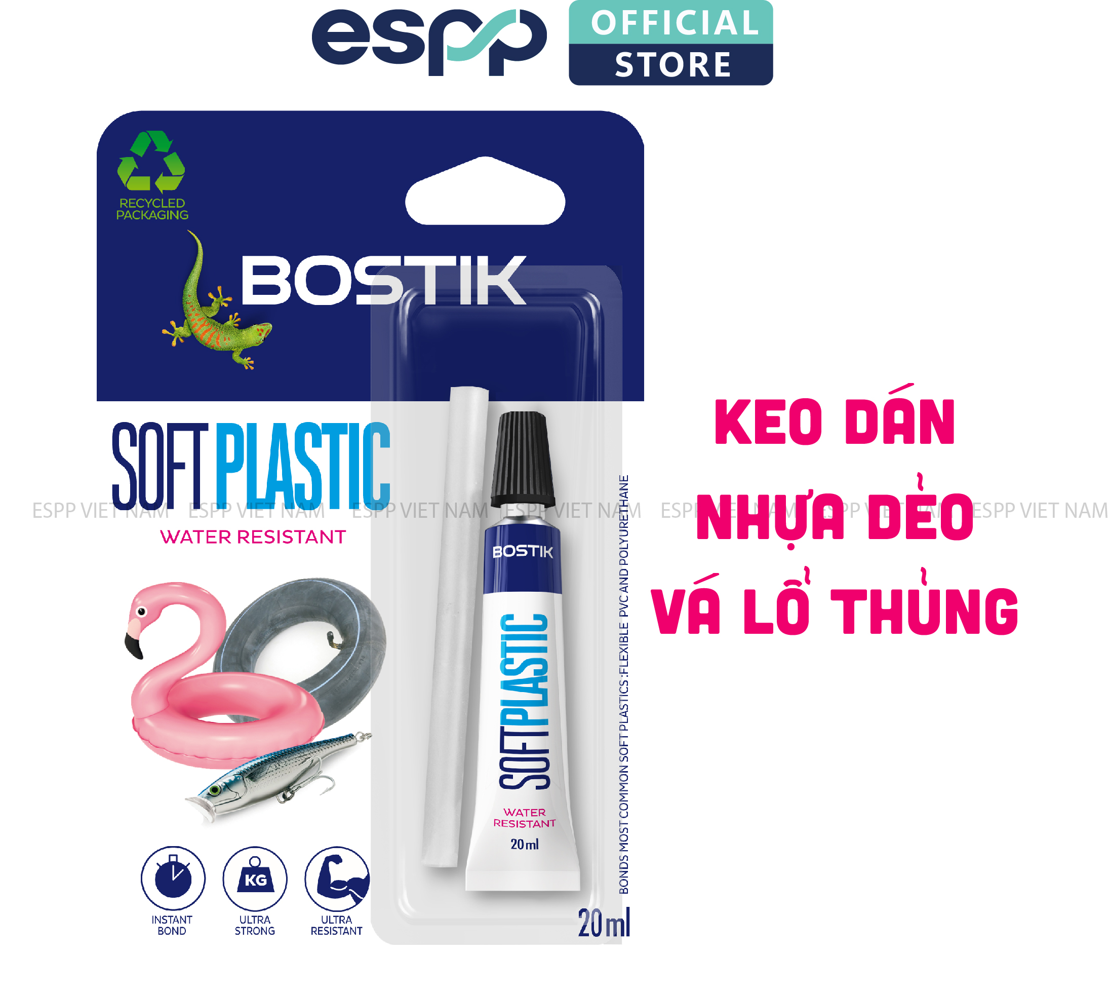 Mô Tả Sản Phẩm - Keo dán Nhựa Mềm 20ml - BOSTIK đa năng sử dụng trên nhiều loại vật liệu nhựa mềm như phao bơi, túi xách - Chất keo dạng gel trong suốt,