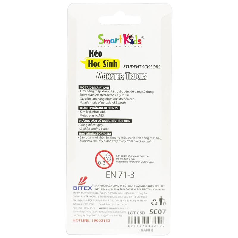 Kéo Học Sinh Monster Truck - Smart Kids SC07 - Xanh Dương Kéo học sinh Smart Kids được làm từ những nguyên liệu cao cấp và nguyên chất, đã qua xử lý kỹ và an