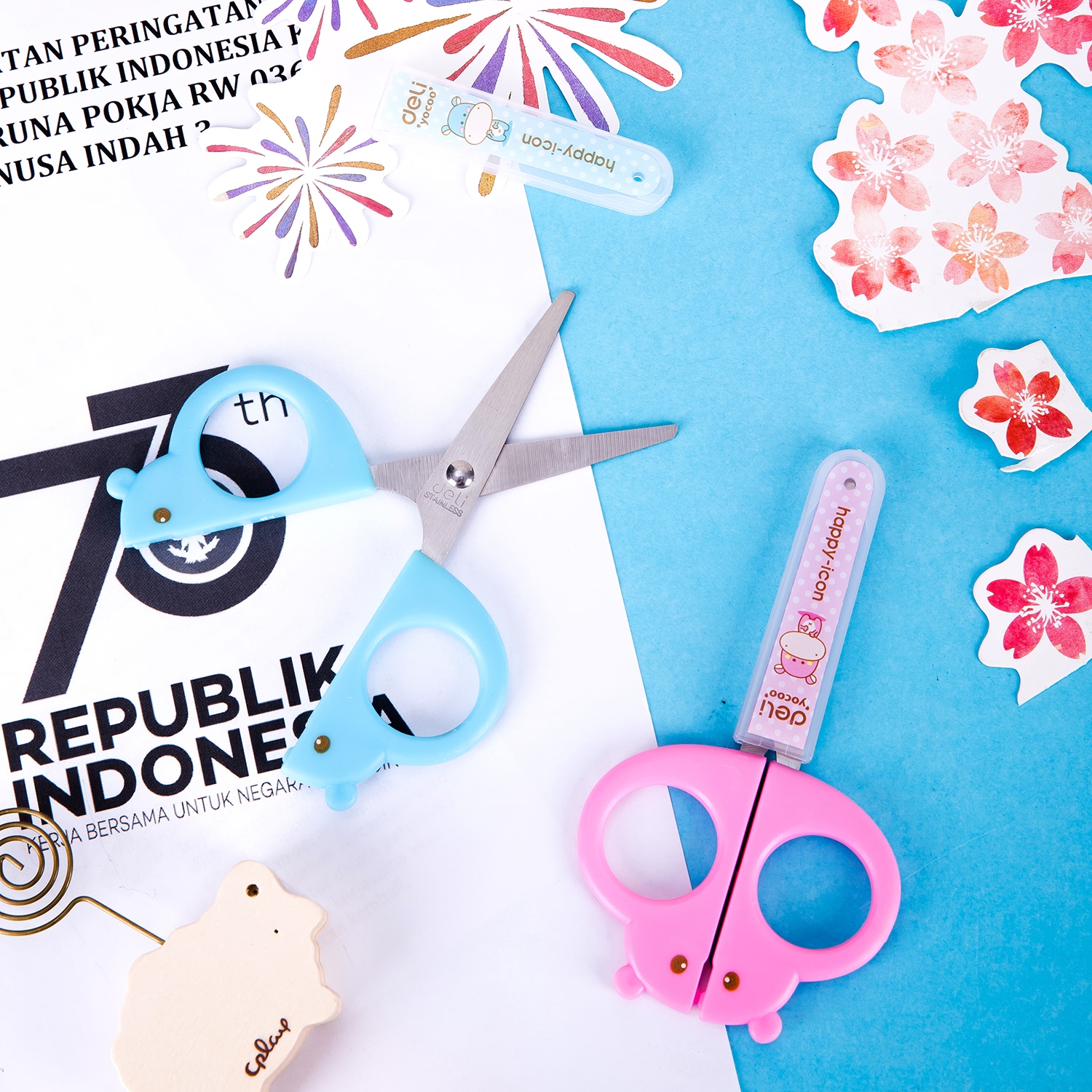 Kéo Thủ Công Học Sinh 121mm Deli - Lưỡi Thép Không Gỉ, Vỏ An Toàn, Màu Hồng/Xanh