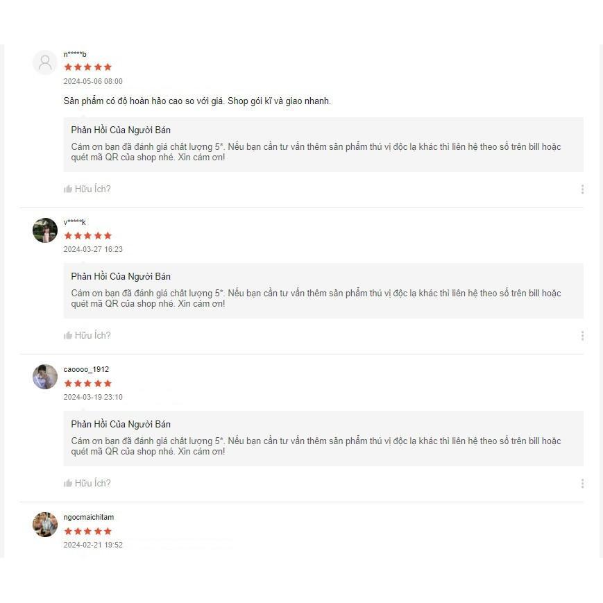 Cảm ơn Quý khách hàng đã mua sắm tại Shop Quý khách sau khi nhận sản phẩm vui lòng kiểm tra kỹ sản phẩm và phản hồi lại cho shop nếu sản phẩm bị lỗi hay giao nhầm shop sẽ hỗ trợ đổi hàng Khách iu đừng quên đánh giá ️️️️️ để shop có động lực hoàn thiện chất lượng và dịch vụ hơn ạ !!!! Sản phẩm này là tài sản cá nhân được bán bởi Nhà Bán Hàng Cá Nhân và không thuộc đối tượng phải chịu thuế GTGT. Do đó hoá đơn VAT không được cung cấp trong trường hợp này.