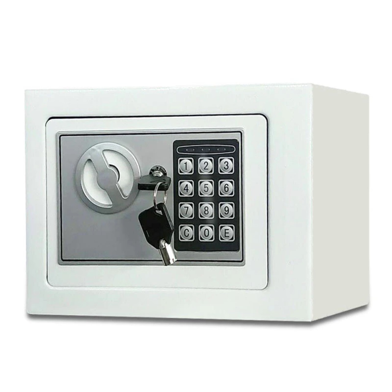 - Két sắt mini được trang bị 2 chìa khóa phụ dùng để thay PIN và thay đổi mật khẩu khi quên. Ưu điểm của sản phẩm Két sắt mini 17E: