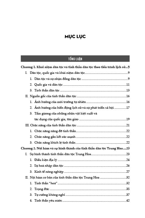 Cuốn sách là công trình nghiên cứu chi tiết về quá trình hình thành khái niệm dân tộc, sự thay đổi trong ngoại diên và nội hàm của khái niệm dân tộc trong tiến trình lịch sử Trung Hoa từ thời Tiên Tần đến cận đại, cùng đặc trưng của nó trong mỗi giai đoạn lịch sử đặc thù, trong đó nhấn mạnh: