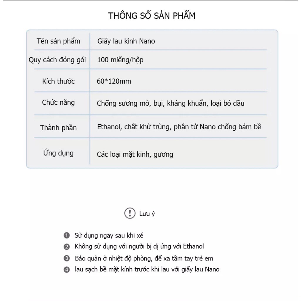 Lau bằng khăn giấy, mặt kính được phủ 1 lớp nano chống bám hơi nước, sương mù, hấp hơi.