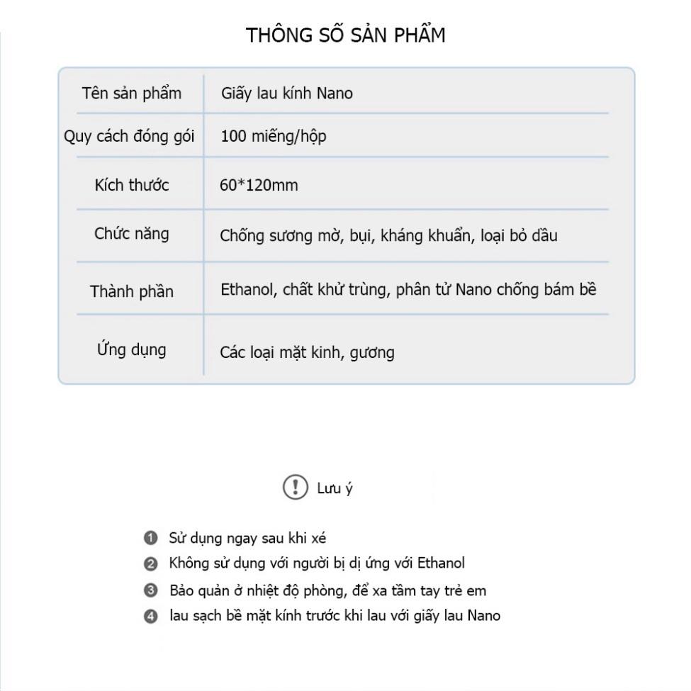 Khăn Lau Kính Nano Chống Bám Hơi Nước, Lau Sạch Nhờn Vân Tay Bụi Bẩn Trên Kính, Điện Thoại - Hộp 100 Tờ