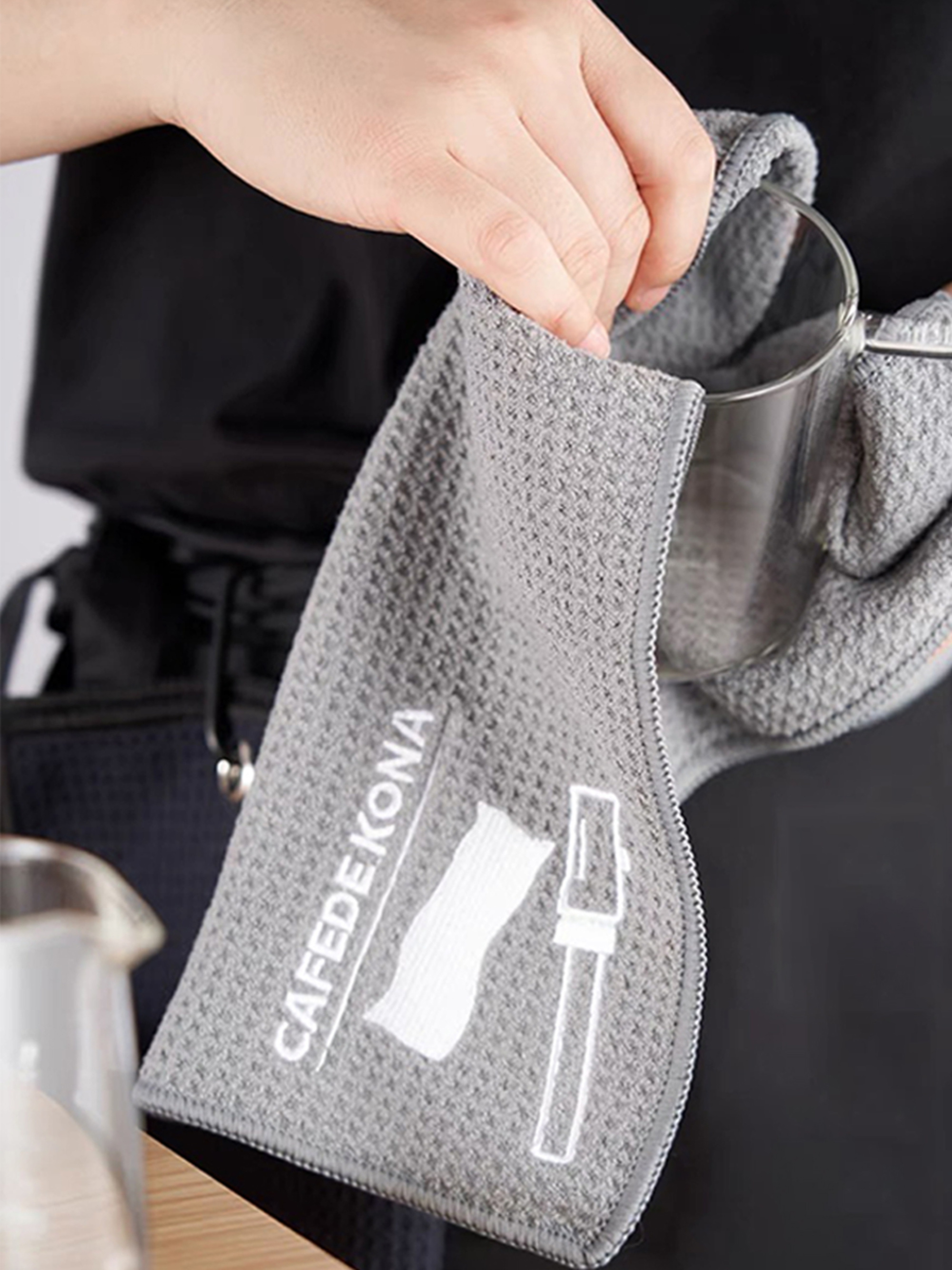 KHĂN LAU QUẦY PHA CHẾ CHUYÊN DỤNG CAFEDE KONA Một barista chuyên nghiệp luôn phải giữ cho quầy pha chế của mình được sạch sẽ . Một chiếc khăn lau quầy pha chế chuyên dụng