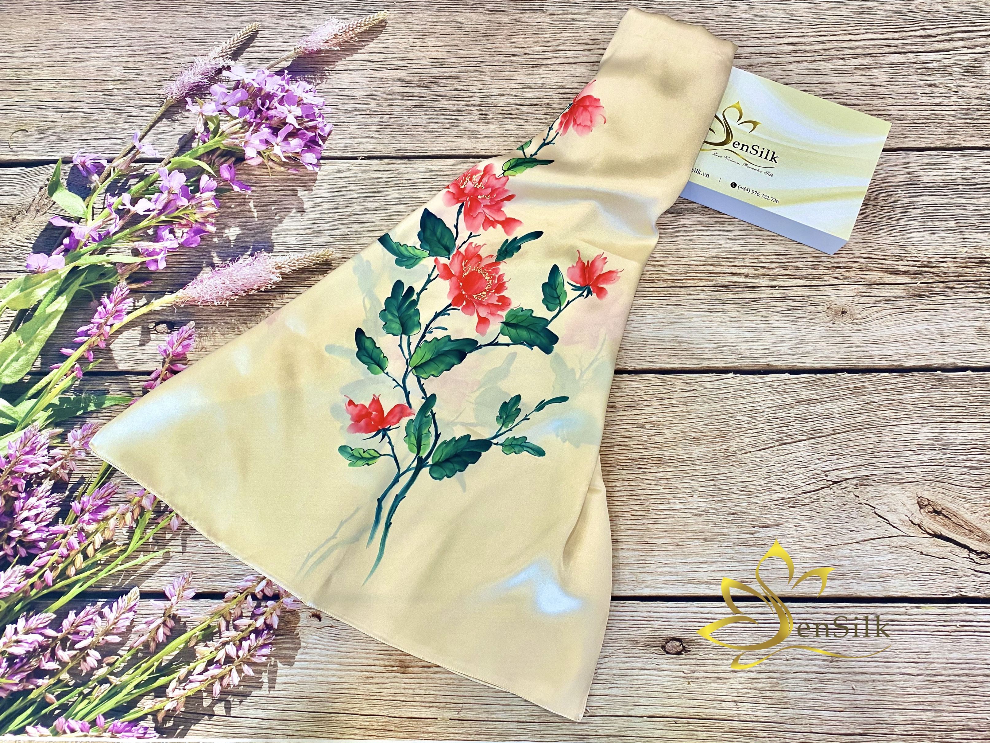 Khăn Lụa Vẽ Tay Hoa Mẫu Đơn SenSilk – Quà Việt Nam được xem là loài hoa của sự vương giả, phú quý và giàu sang. Chính bởi vậy, mẫu đơn không chỉ được người ta ưa chuộng bởi vẻ đẹp, khí chất đặc biệt mà còn bởi những ý nghĩa tốt lành mà nó mang lại.!