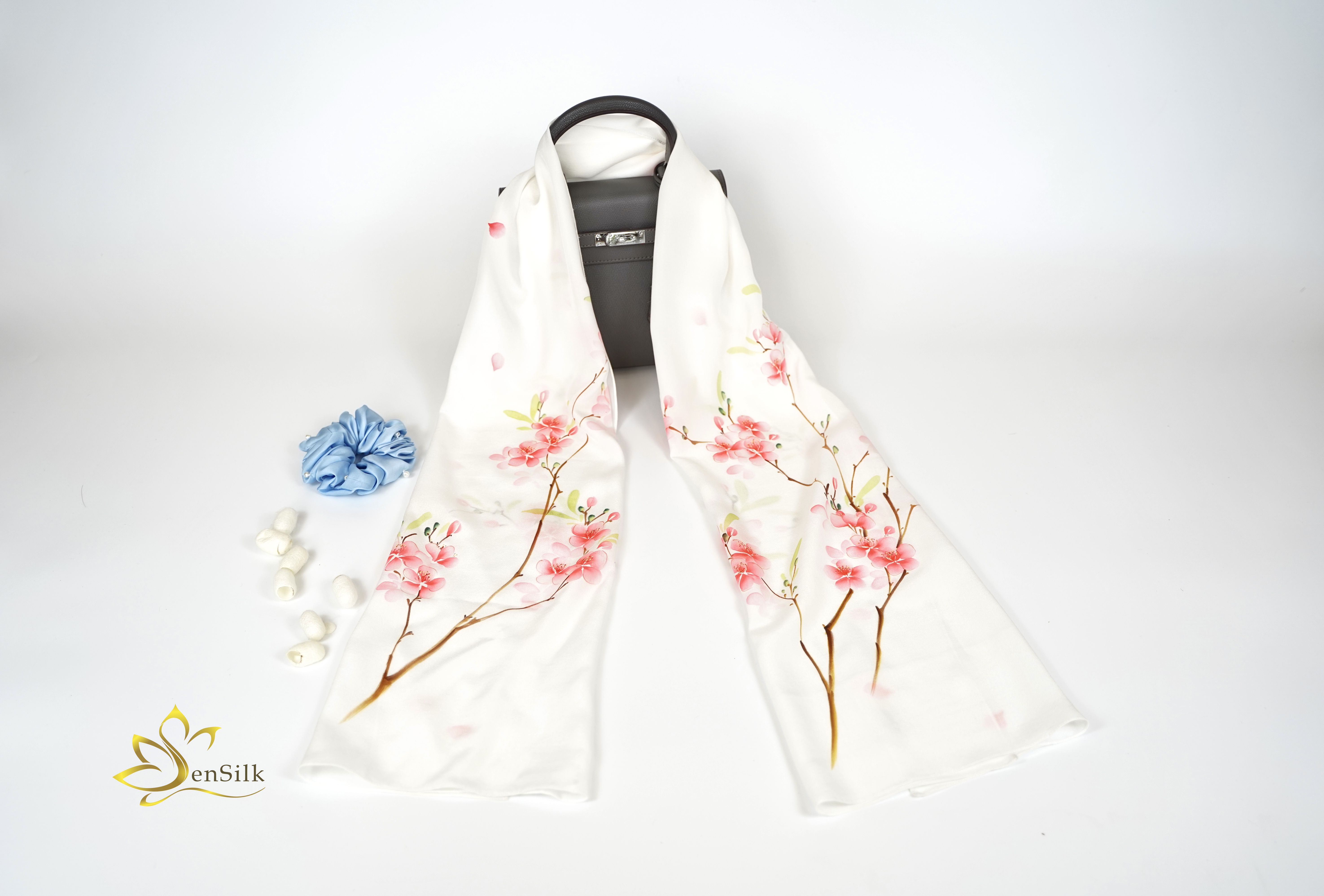 Khăn Lụa Vẽ Hoa Đào SenSilk làm một tác phẩm nghệ thuật có 1 không 2 được tạo nên từ đôi bàn tay tài hoa của người họa sỹ kết hợp với khăn lụa tơ tằm Bảo Lộc