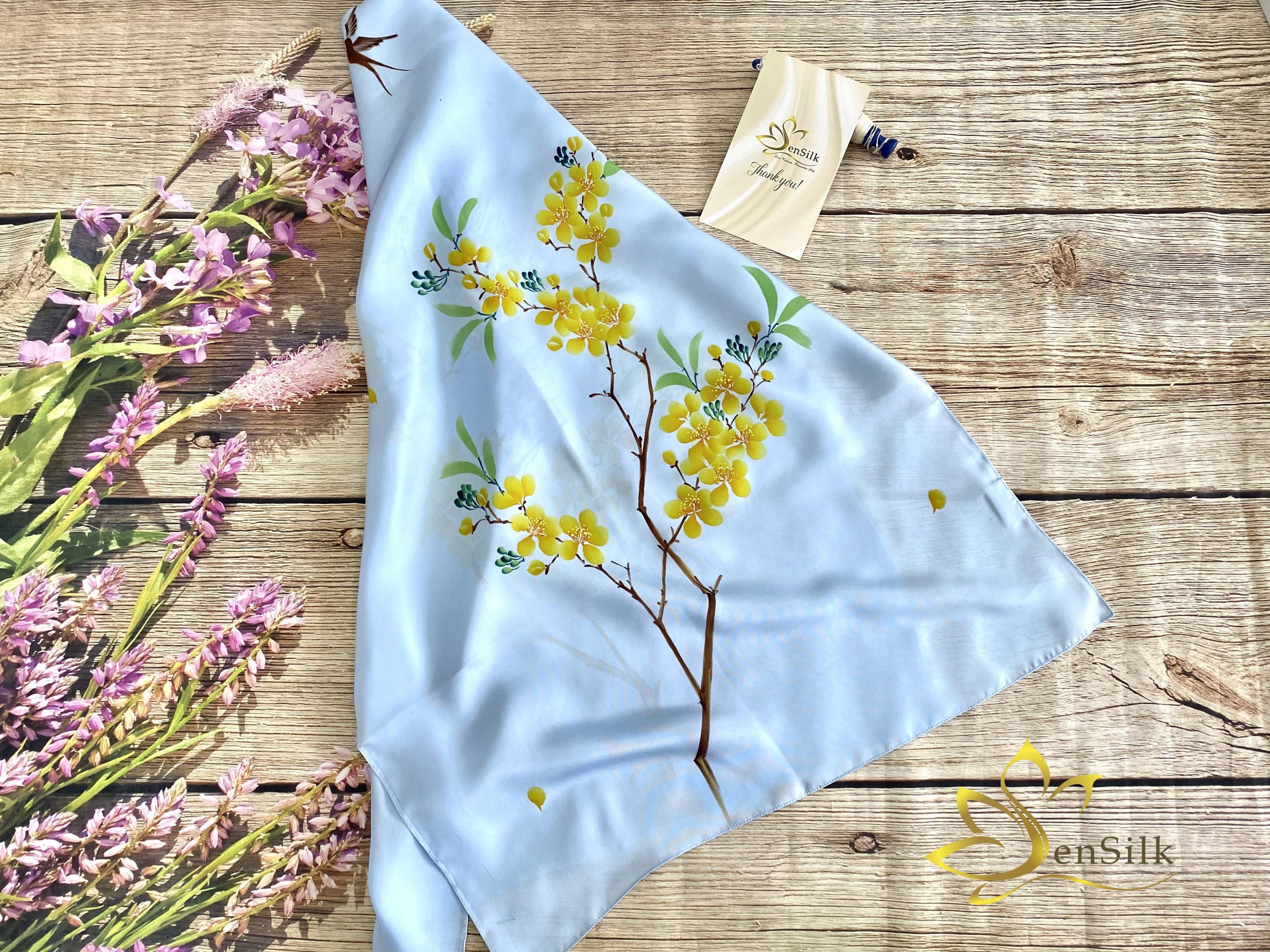 Mua tại TiktokKhăn Lụa Tơ Tằm Vẽ Tay Hoa Mai SenSilk biểu trưng cho 5 điều tốt lành bao gồm hạnh phúc, may mắn, trường thọ, thành công và hòa bình. Ý nghĩa này xuất phát từ việc hoa mai có năm cánh hoa và tên khác của nó là hoa năm phước lành. Hoa mai có ý nghĩa sâu sắc trong lòng người Việt, đặc biệt là người dân Nam bộ. Hoa mai cũng là một trong 4 tứ mộc “Tùng, Cúc, Trúc, Mai” Mai vàng luôn là loài hoa xuất hiện trong những ngày Tết Nam Bộ. Màu vàng của hoa mai từ lâu được xem là màu hy vọng, tượng trưng cho sự giàu sang phú quý (vì trùng với màu của vàng), hợp với niềm hân hoan chờ đón Tết đang rạo rực trong lòng người dân. ĐẶC ĐIỂM NỔI BẬT CỦA KHĂN LỤA VẼ TAY SENSILK LIMITED – SILK PAINTING *SenSilk nhận vẽ thủ công theo yêu cầu riêng của bạn nha