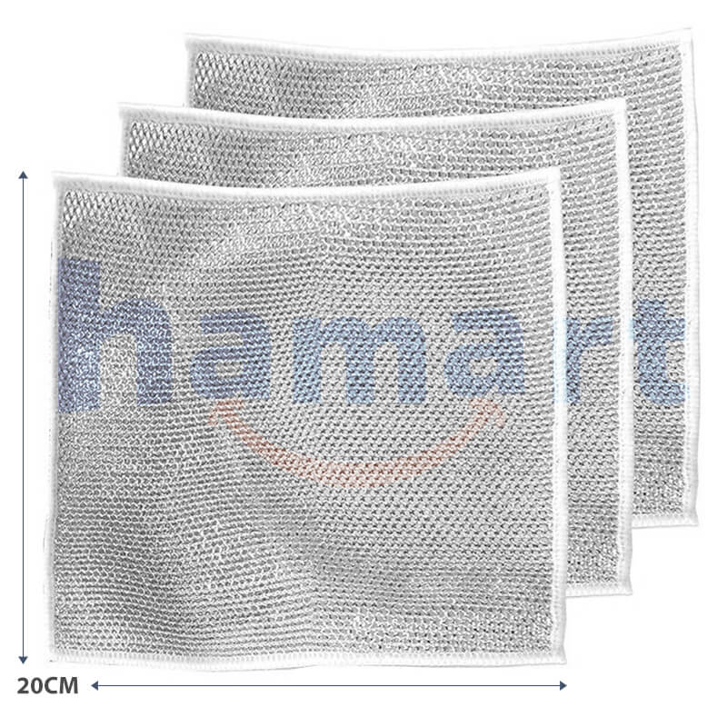 ✨Khăn Lưới Rửa Bát Dày 2 Lớp Giẻ Rửa Chén Dây Kim Loại 20cm Chà Nồi Chảo Thép Inox Cọ Bếp Đa Năng