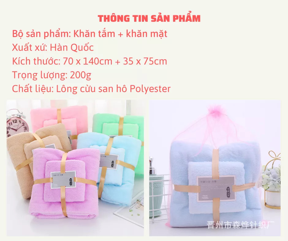 Mua tại TiktokKhăn Tắm, Khăn Mặt, Combo 2 Khăn Lông Cừu Kích Thước 70cm x 140cm, 35cm x 75cm, Tiêu Chuẩn Hàn Quốc Sêu Mềm Mịn, An Toàn Cho Da - Chính hãng