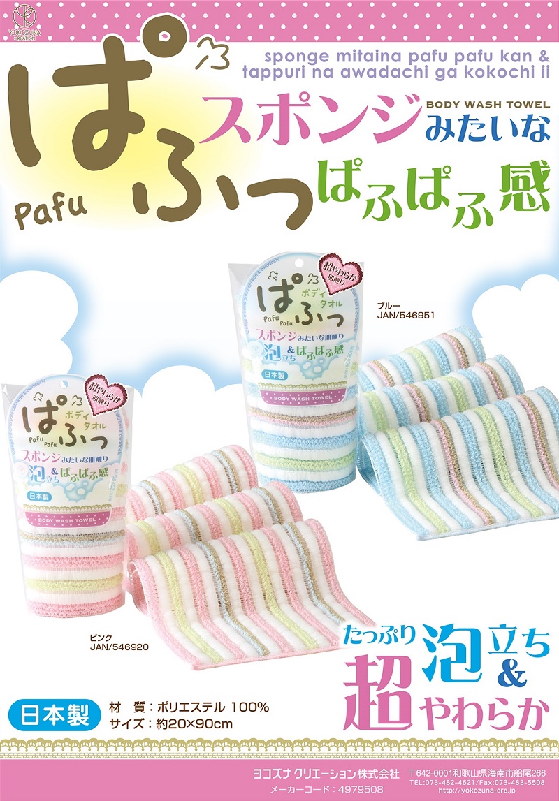 Khăn tắm tạo bọt Yokozuna Creation 28x100cm ■ Xuất xứ: Nhật Bản | MADE IN JAPAN ■ NSX: Yokozuna Creation Co., Ltd (Japan) ■ Kích thước: (bao bì) 23.4 x 11.8 x 5.3cm  ■ Màu sắc:  - 546609 :