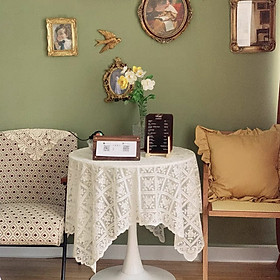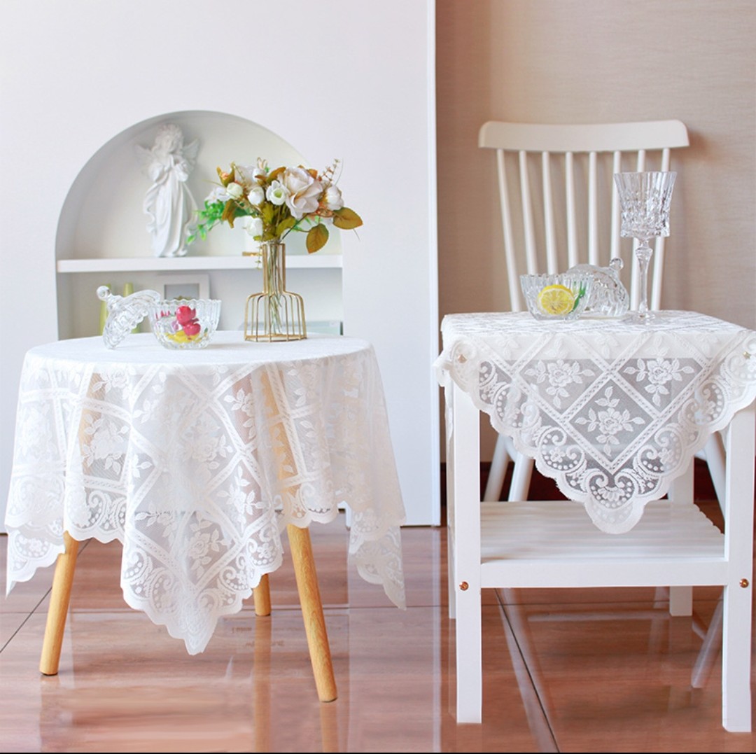 Khăn trải bàn vintage, khăn hình vuông họa tiết ren hoa màu trắng decor cực xinh
