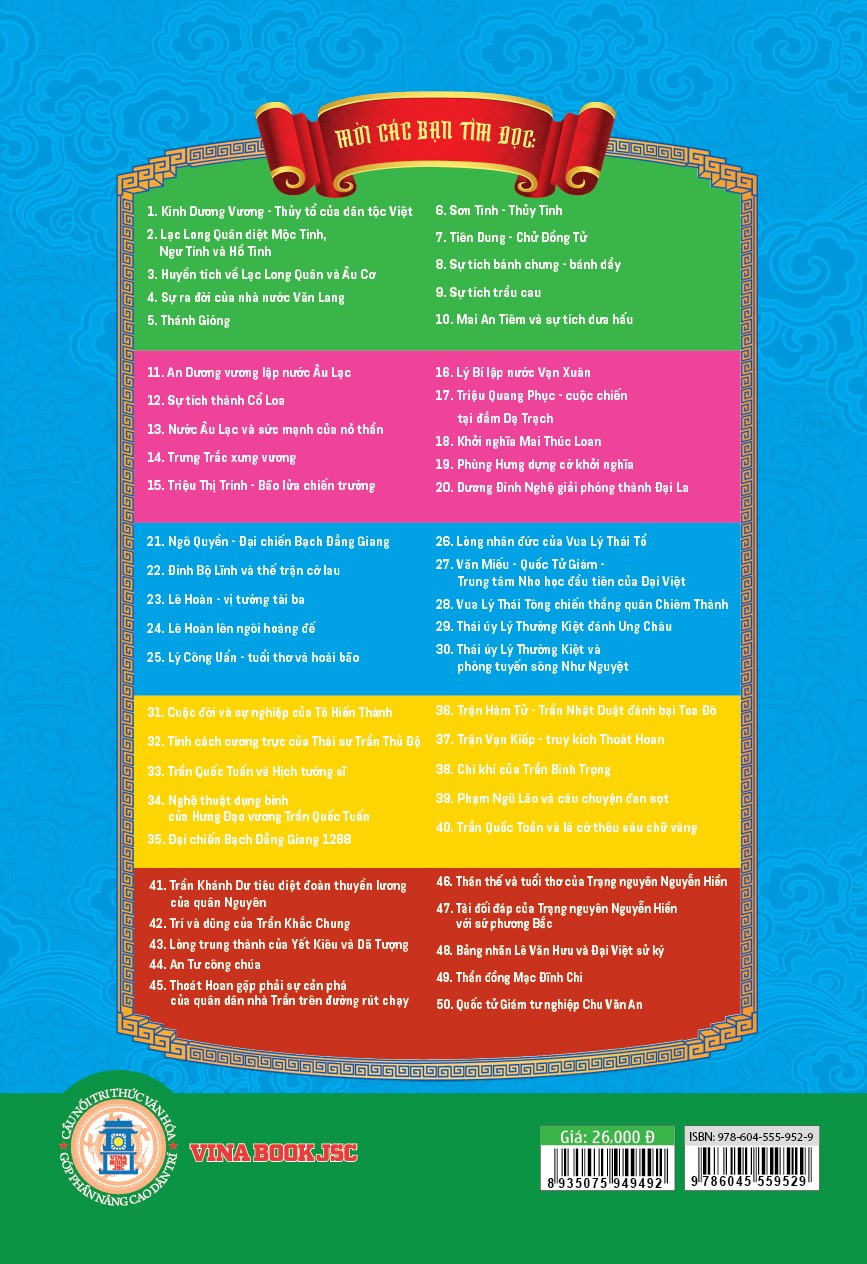Mua tại TiktokBộ sách “Truyện tranh lịch sử Việt Nam – Khát vọng non sông” gồm hàng trăm tập, giới thiệu ngắn gọn, sinh động những truyền thuyết đầy tính nhân văn và những sự kiện, những nhân vật nổi tiếng trong lịch sử hàng nghìn năm của dân tộc Việt Nam. Lê Hoàn vị tướng tài ba - Ông là vị vua đầu tiên của nhà Tiền Lê, có công lớn trong việc gìn giữ nền độc lập cho dân tộc và kiến tạo nước Đại Cồ Việt. Sinh ra trong thời kỳ lịch sử đầy biến động, mồ côi cha mẹ từ nhỏ, lại là người dũng mãnh, có chí lớn, Lê Hoàn sớm bộc lộ tài năng quân sự, ý chí và đức nhân của mình, có công đầu trong việc giúp Đinh Bộ Lĩnh dẹp loạn mười hai sứ quân. Về sau, ông tiếp nối họ Đinh lên nối ngôi, xây dựng đất nước phát triển ổn định.
