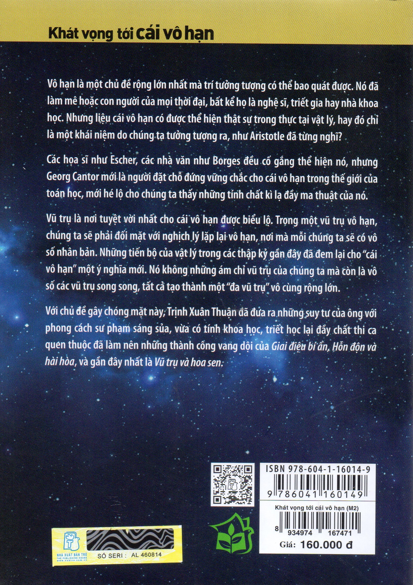 Qua Khát vọng tới cái vô hạn, Giáo sư Trịnh Xuân Thuận sẽ đưa bạn du hành trong thế giới của Vô hạn, từ thế giới của cái nhỏ nhất đến thế giới của cái lớn nhất, và làm sao những thắc mắc hết sức bình thường đã dẫn đến những khám phá vĩ đại nhất của nhân loại.