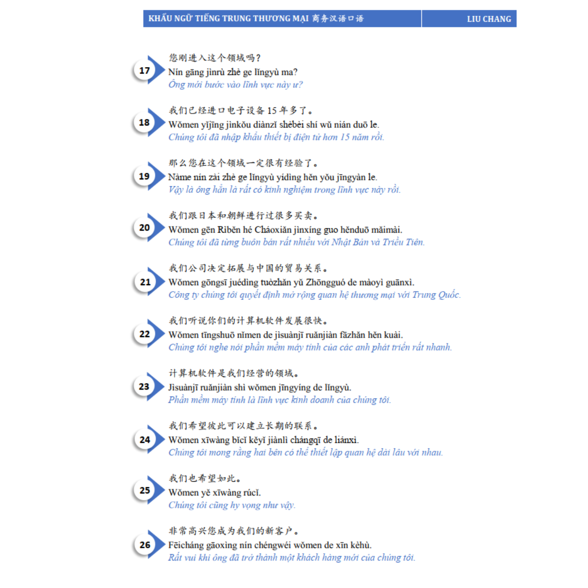 Sách khẩu ngữ tiếng Trung thương mại trình bày chi tiết toàn bộ các chủ đề giao tiếp trong kinh doanh. Đây là cuốn sách hữu dụng cho các bạn sinh viên, nhân viên làm