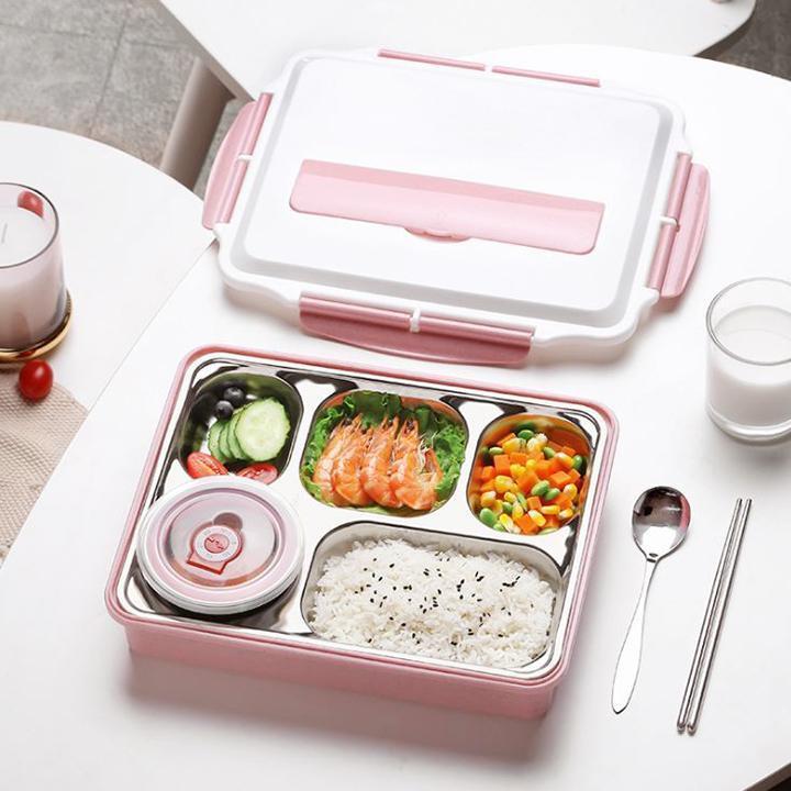 Khay Đựng Cơm Inox Cao Cấp 5 Ngăn Sâu Lòng Hàn Quốc, Khay Đựng Cơm Văn Phòng, Xí Nghiệp Đảm Bảo Vệ Sinh Khay đựng cơm inox cao cấp 5 ngăn sâu lòng Hàn Quốc