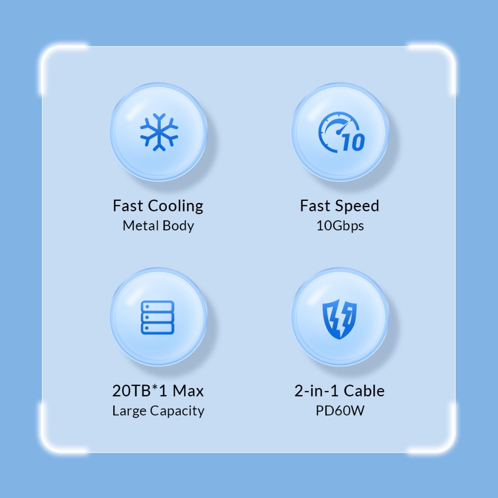 Tính năng nổi bật của Hộp ổ cứng SSD ORICO AXM2S-G2-V1-GY-BP - Tốc độ truyền dữ liệu cực nhanh 10Gbps - Với chuẩn kết nối USB 3.2 Gen 2 Type-C, sản phẩm đạt tốc độ truyền