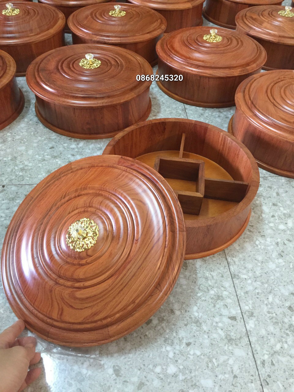 ✨Khay đựng mứt tết bách kẹo ,hạt dưa bằng gỗ hương kt mặt tròn 31×10cm