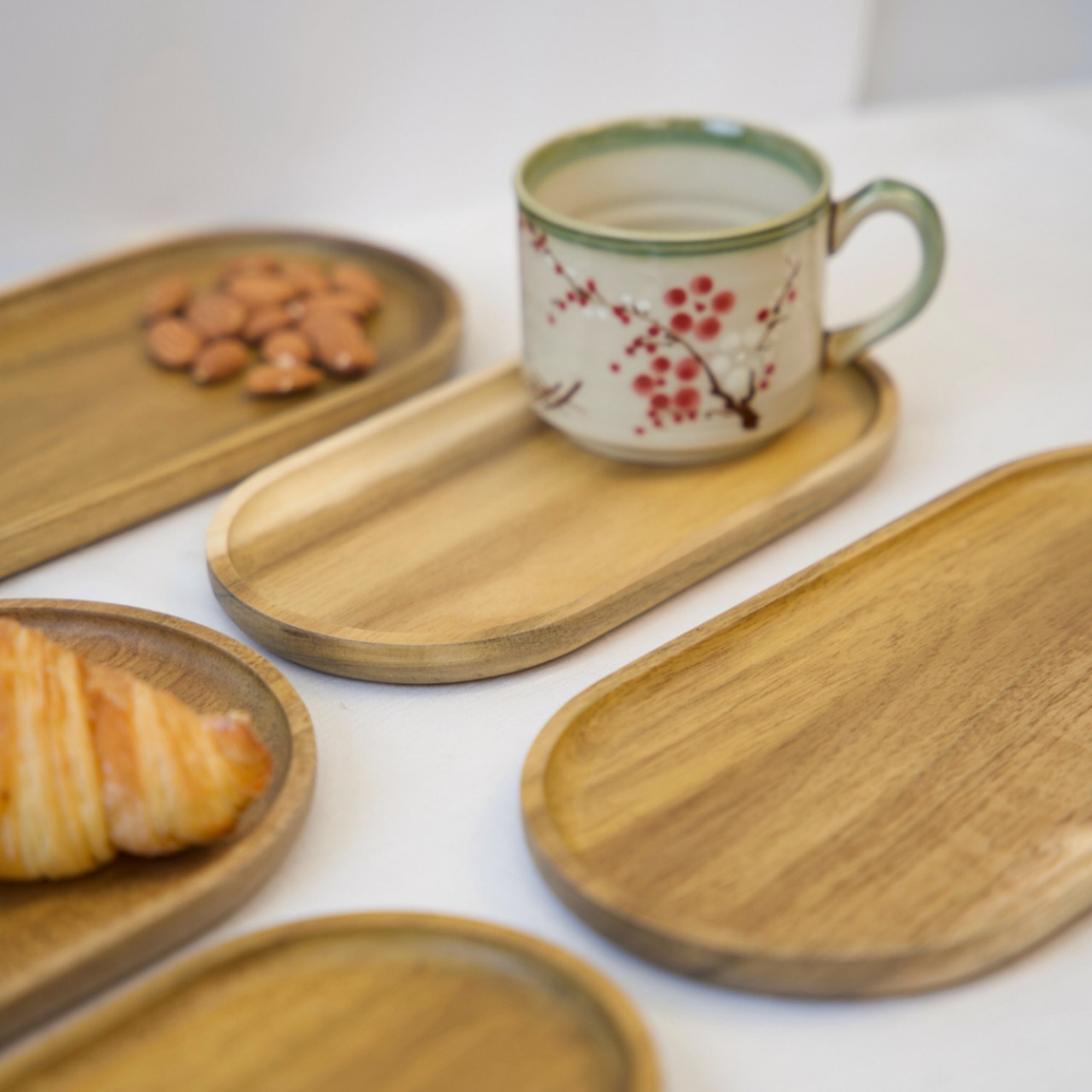 ✨Khay gỗ keo đa năng hình oval Vibasic, đa dạng kích thước, chụp hình decor đựng đồ trang trí