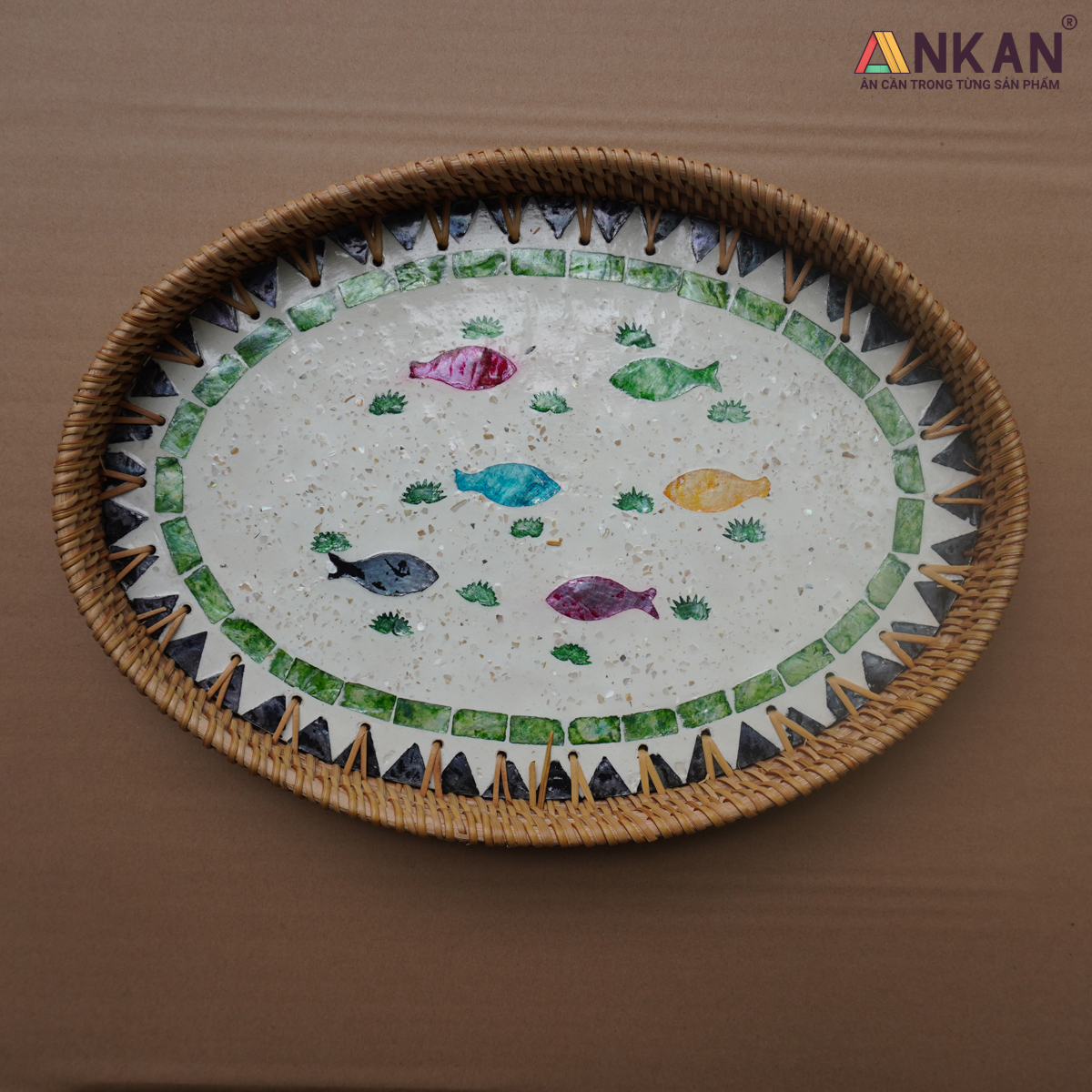 Khay Mây Khảm Trai Cỡ Lớn 56cm – Sang Trọng, Thủ Công Cao Cấp | ANKAN