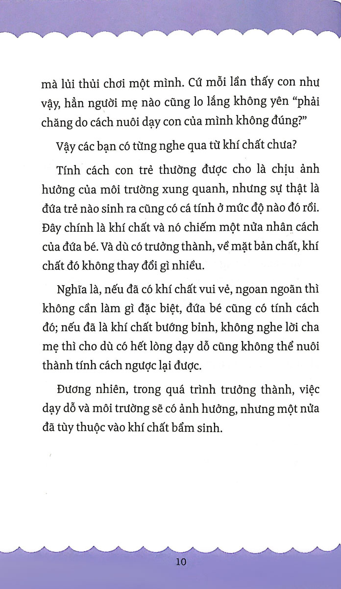 Không có khí chất tốt hay xấu. Tùy vào cách phát huy, bất kỳ khí chất nào cũng có thể trở thành “cá tính xuất sắc”, hay “tài năng” của trẻ. Sách không chỉ dành cho phụ huynh để áp dụng cho con trẻ, mà còn áp dụng cho chính người lớn. Mỗi người sẽ tìm thấy mình trong các kiểu khí chất, hiểu được những nghề nghiệp phù hợp với mình và cách ứng xử phù hợp với mình và người khác dựa trên kiểu khí chất.