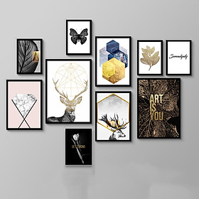 Kích Thước Bộ Khung gồm: 2 khung 30x40cm, 3 khung 21x30cm, 5 khung 15x21cm (Tổng kích thước sau khi treo khoảng 90x130cm)