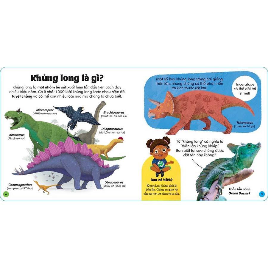 Nội dung phong phú: Cuốn sách bao gồm nhiều chủ đề khác nhau về khủng long, giúp bé khám phá một cách toàn diện về thế giới của loài vật cổ đại này.