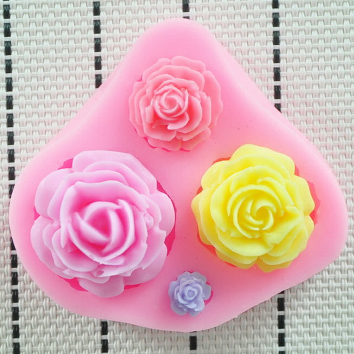 ✨Khuôn silicon làm bánh, rau câu, socola 4 hoa hồng – Mã số 1045