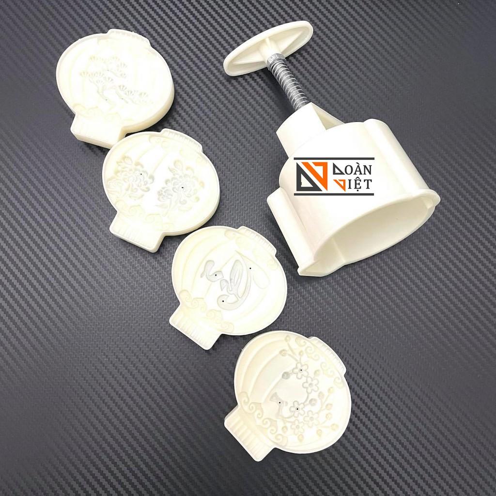 Khuôn làm bánh trung thu, bánh ngọt 4 mặt tròn hình hoa và chữ họa tiết đẹp, sắc nét dạng khuôn nén